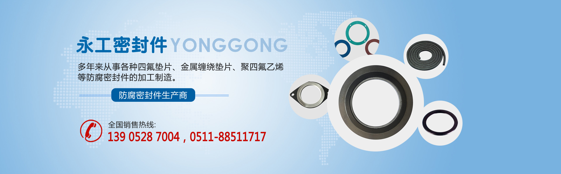 江蘇省揚(yáng)中市永工密封件有限公司,位于美麗富饒的長(zhǎng)江三角洲中,氣候宜人,交通方便,是一家專業(yè)生產(chǎn)四氟墊片、金屬纏繞墊片、聚四氟乙烯等防腐密封件的企業(yè)。